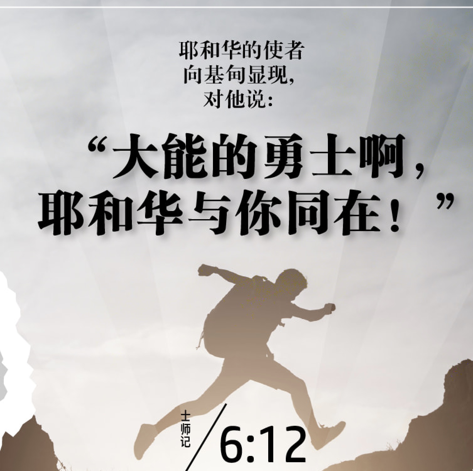 士师记6:12耶和华的使者向基甸显现,对他说:“大能的勇士啊,耶和华与你同在!”