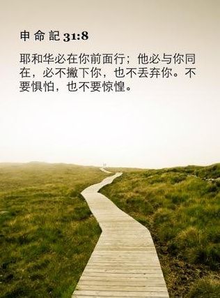 申命記31章8節:耶和華必在你前面行;他必與你同在,必不撇下你,也不丟棄你。不要懼怕,也不要驚惶